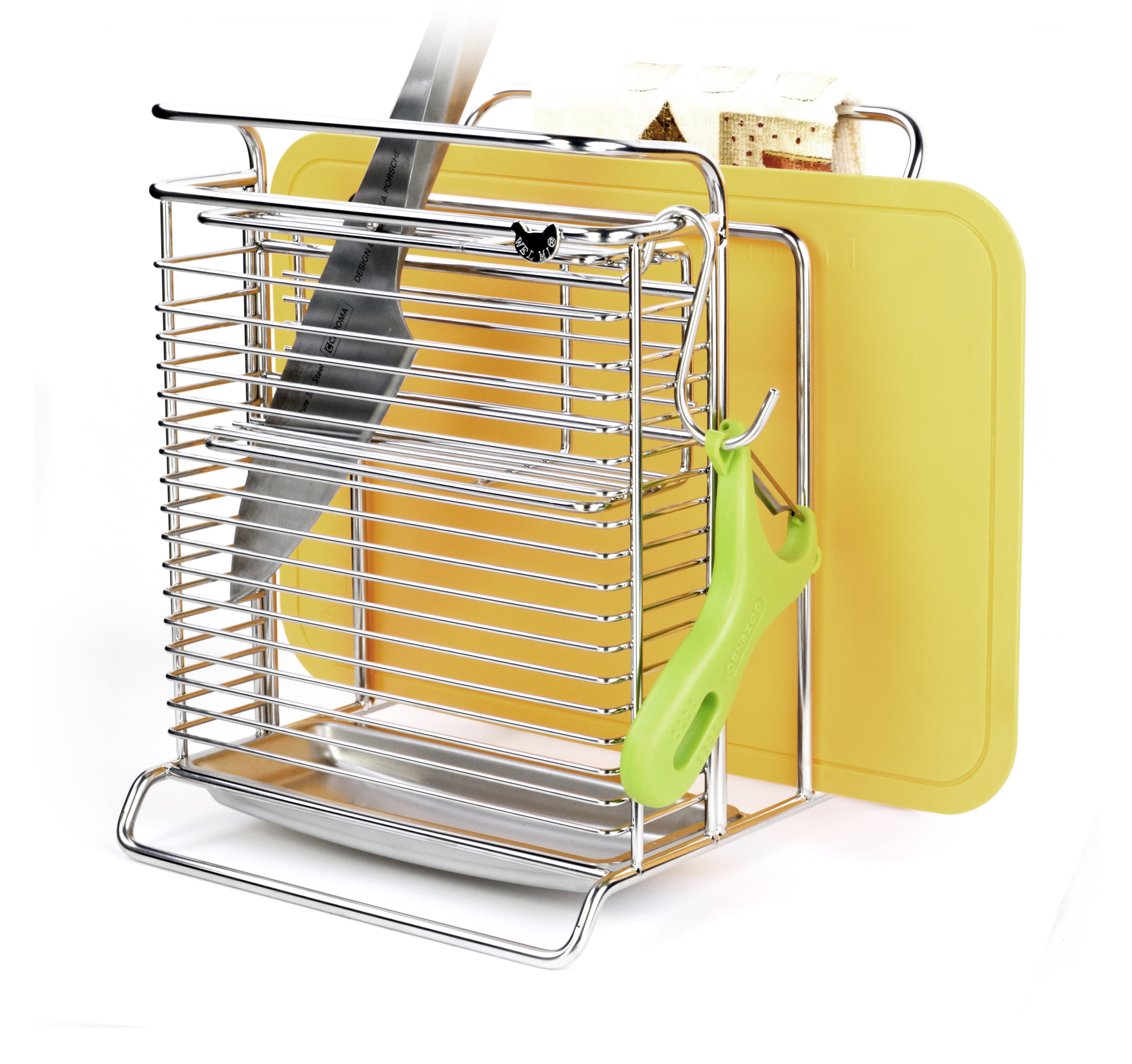 味美不鏽鋼雙層碗盤架 + 多功能掛式刀架 3230S+3184S