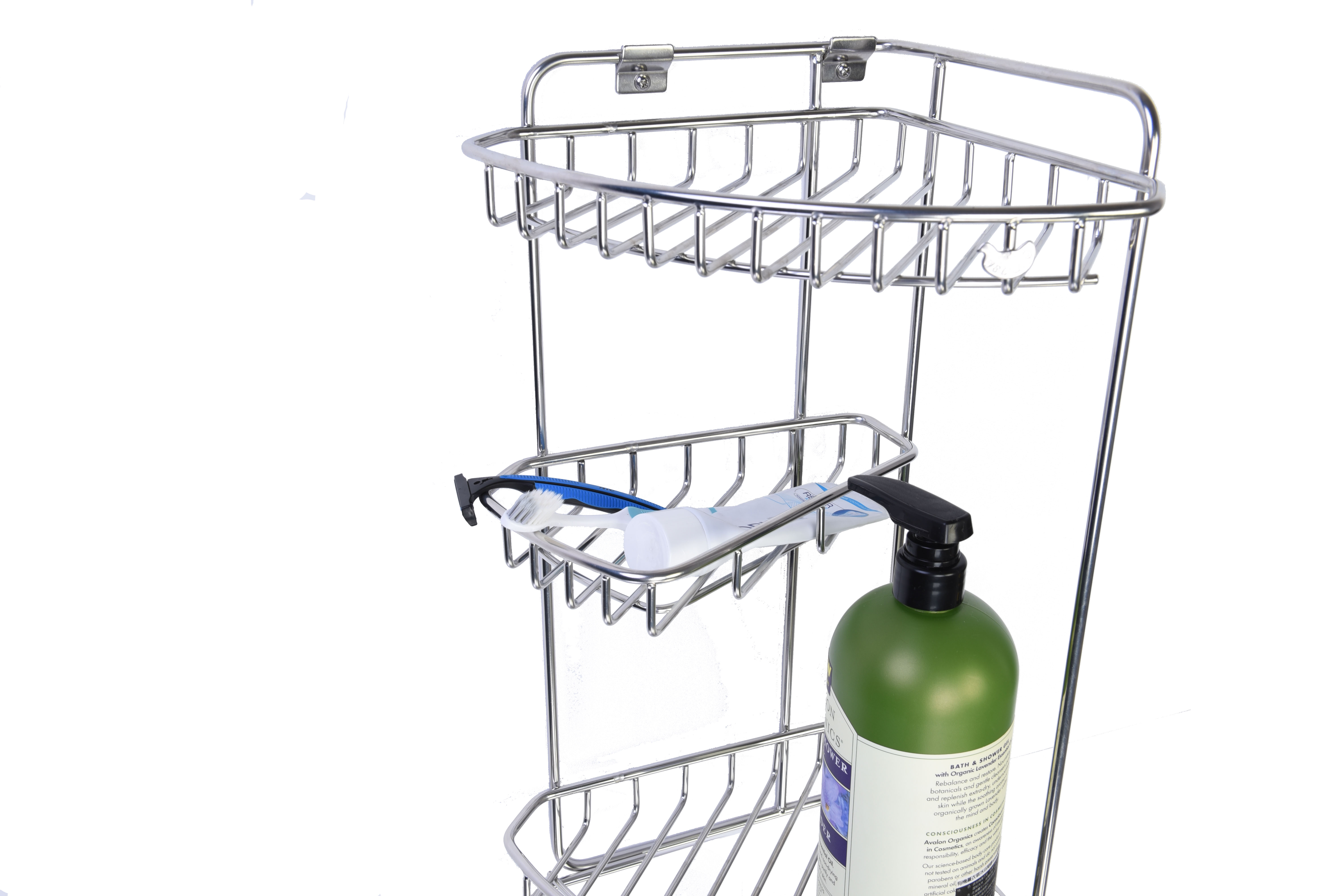 • 上下層可放特高的洗髮、沐浴瓶罐,中間層可放香皂、洗滌用品