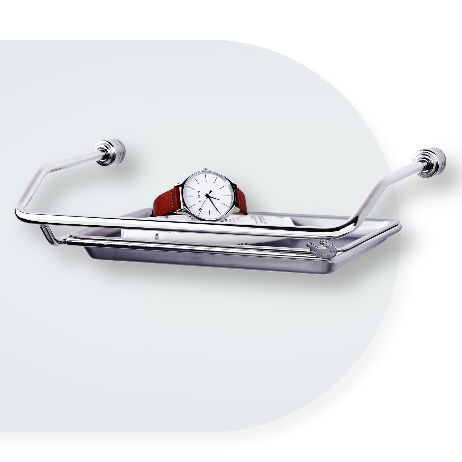 (3) 附不鏽鋼托盤,洗臉時可將眼鏡、隱形眼鏡盒、刮鬍刀等東西放置,讓東西不會碰到水