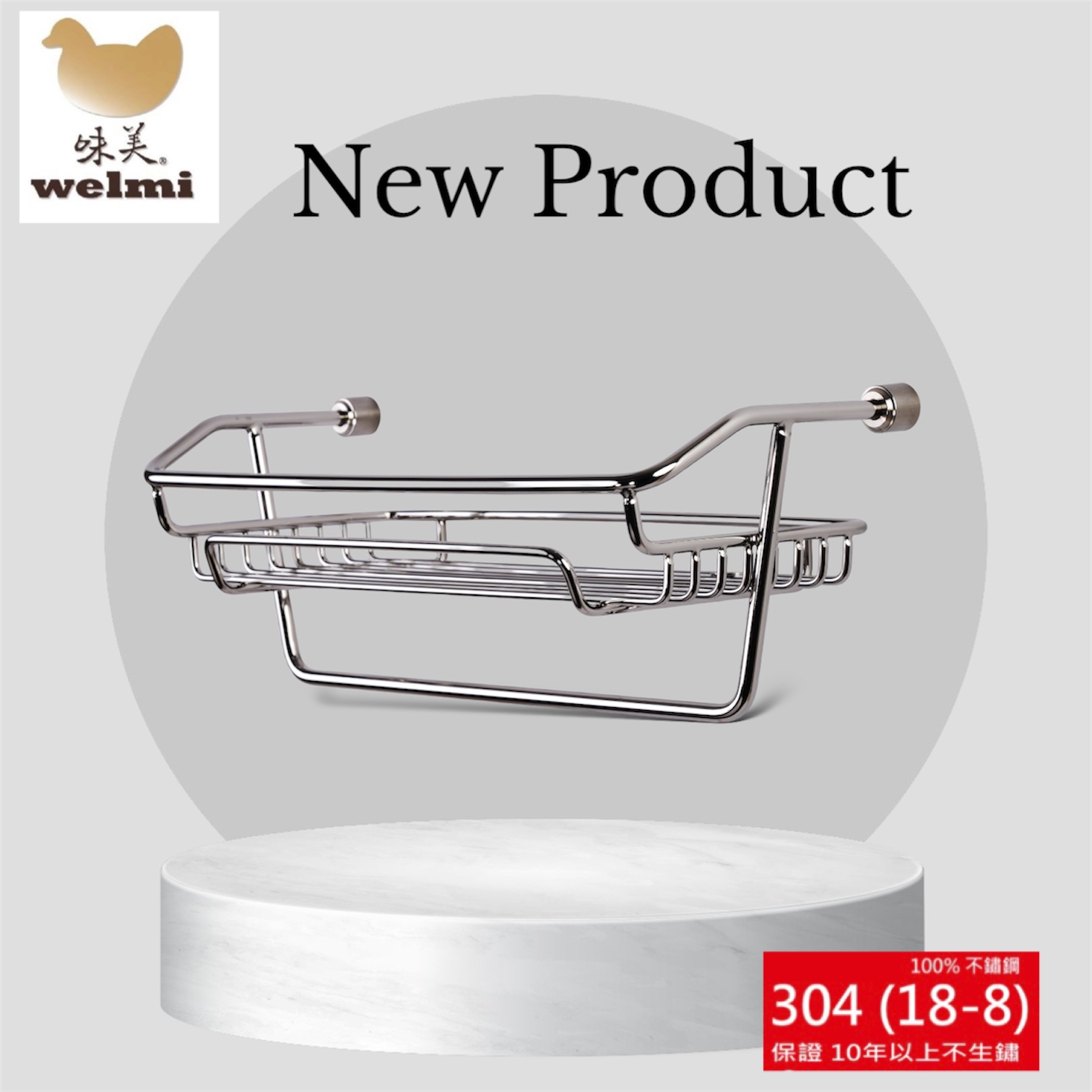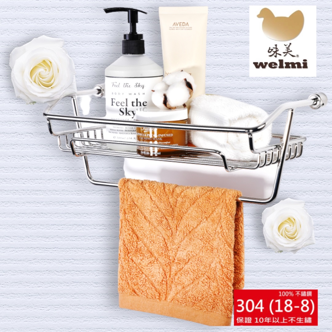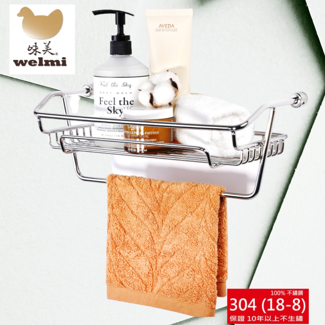 『welmi 味美不鏽鋼衛浴配件』不僅產品本身採用高級不鏽鋼 304 (18-8) 材質製成,連配件都講究!本系列產品所附帶的五金配件都以高規格化處理,採用不鏽鋼等螺絲配件,以確保整體品質!旣美觀又實用的貼心設計讓您為浴室裡的大小毛巾、沐浴瓶罐輕輕鬆鬆的找一個家