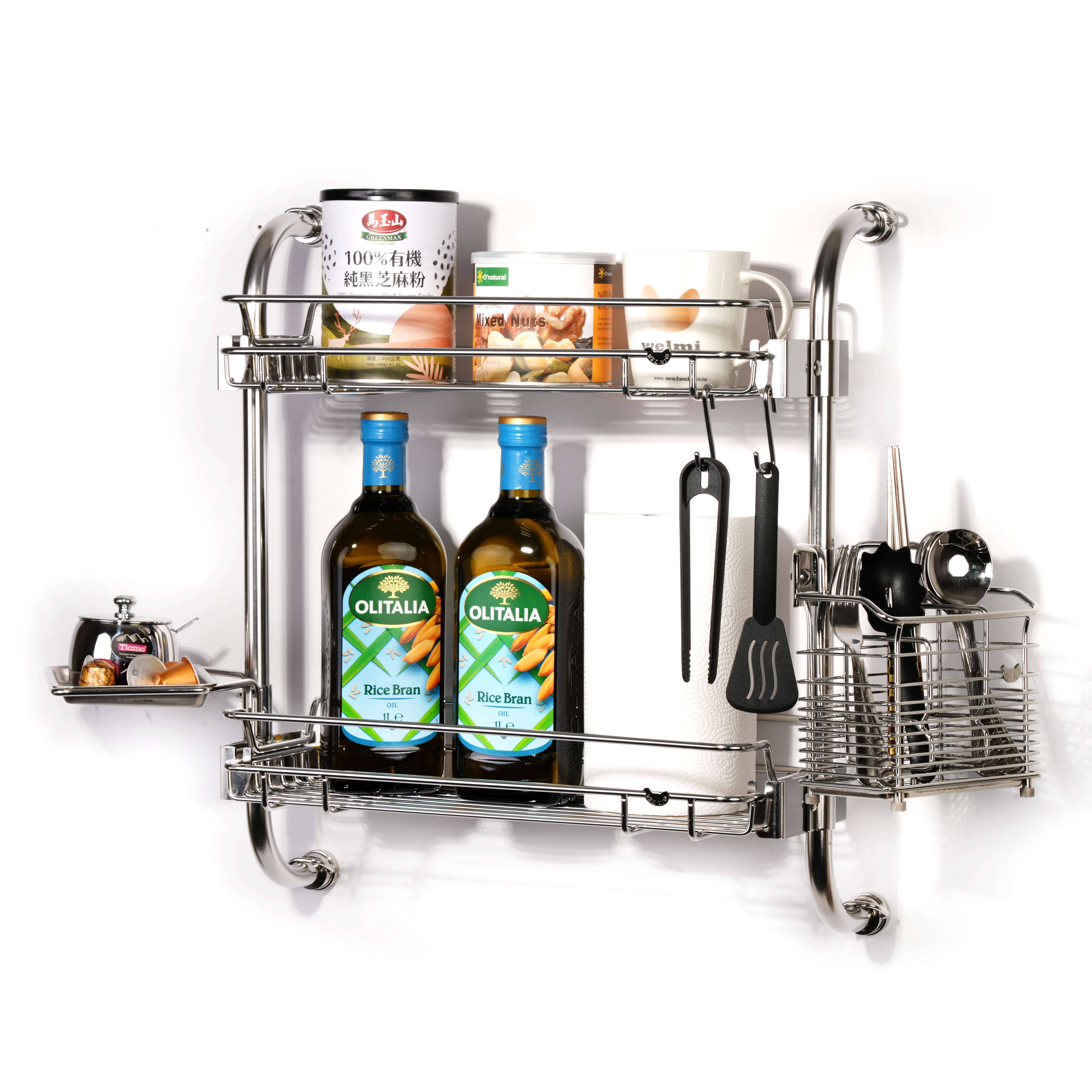 | 內部配件: | 塑膠壁塞 * 4、不鏽鋼接頭 * 4 、不鏽鋼長螺紋鋼釘 (固定牆壁) * 4、不鏽鋼管 * 2、固定管與不鏽鋼接頭插銷 * 4、不鏽鋼 M5 螺絲螺帽 各 * 12、不鏽鋼內外側管束 各 * 4、不鏽鋼置物籃 * 2 |