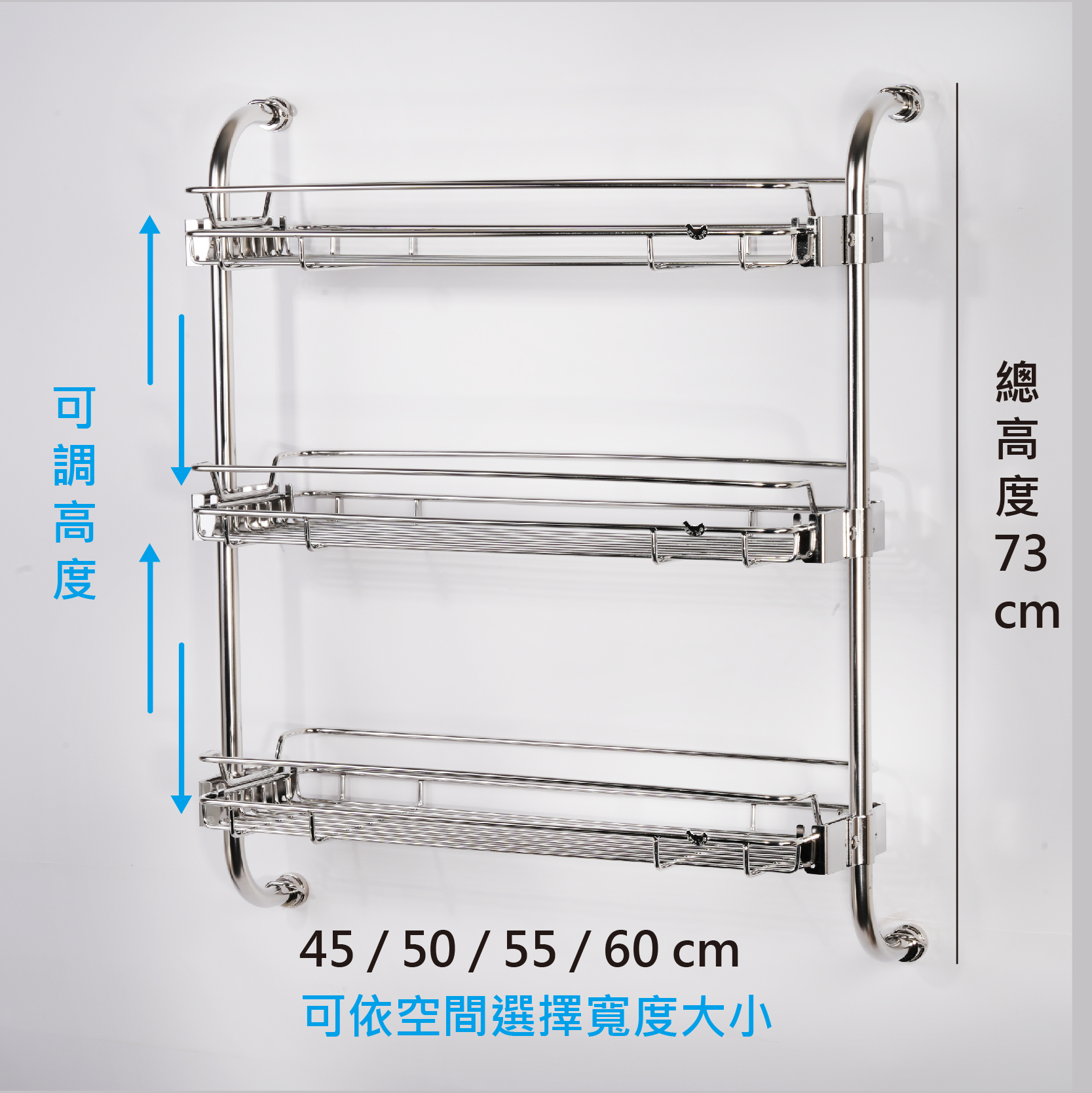 1. 功能 三層置物架,上下層均可 “任意調整” 所需之位置